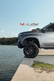 View the 4P83 wheel in 24x12 with Nitto 35X12.5X24 tires on this Chevrolet Silverado 1500. Discover how these custom wheels enhance the look and performance of your Chevrolet Silverado 1500 Visit 4PLAY Wheels for more!