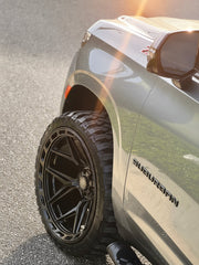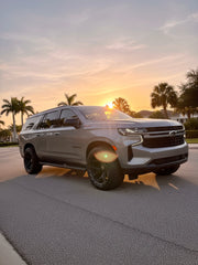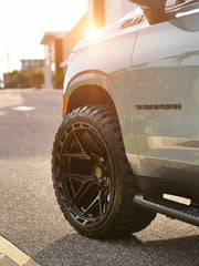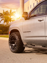 Chevrolet Suburban on our 4P55's 24x12 wrapped in 33x12/5x24 @rbptire with stock suspension. Does it rub? Yes, you'll need to either lift the vehicle 2" or more, OR some minimal plastic fender liner trimming required for stock suspension fitment. We also offer these wheels in a 24x10 for a bolt on fitment, no modifications necessary. Contact us for details, in stock NOW!