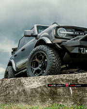 View the 4P50 wheel in 22X10 with 37X12.5X22 Nitto tires on this 2022 Ford Bronco. Discover how these custom wheels enhance the look and performance of your Ford Bronco Visit 4PLAY Wheels for more!