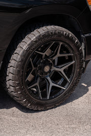 View the 4P06 wheel in 22x10 with 285X50X22 tires on this Dodge Ram 1500. Discover how these custom wheels enhance the look and performance of your Dodge Ram 1500 Visit 4PLAY Wheels for more!