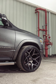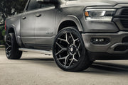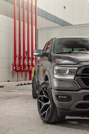 View the 4P06 wheel in 24x12 with 335X30X24 CONTINENTAL TIRES tires on this Dodge Ram 1500. Discover how these custom wheels enhance the look and performance of your Dodge Ram 1500 Visit 4PLAY Wheels for more!