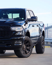 RAM 1500 built by @dusa_amsterdam sitting perfectly on our 22x10 4P83 bronze edition wheels. 305x45x22 @mickeythompsontires with stock suspension, bolt on setup, no rubbing, wheels are in stock NOW, contact us anytime to order your set.